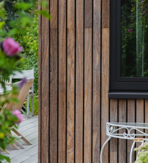 Jaya – tai tanki ir itin tvirta tropinė mediena. Ji pasižymi šiltu rudos spalvos atspalviu, tolygia tekstūra ir subtiliu medienos raštu, suteikiančiu fasadui elegantišką, modernų vaizdą. Dėl stabilios struktūros ir ilgaamžiškumo Jaya puikiai tinka lauko sąlygoms, o laikui bėgant natūraliai ir tolygiai pilkėja, išlaikydama estetinį vientisumą.