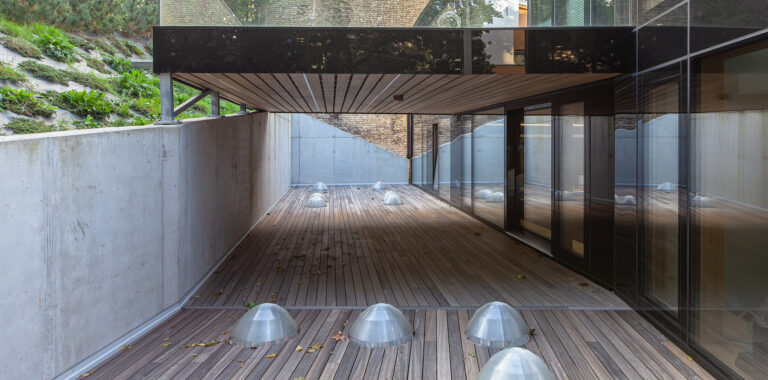 Senojo Užupio kontekste organiškai įsiliejusio pastato terasose įrengta Liuksemburgo gamintojo Vetedy medinė terasų sistema Softline® su eukaliptinės Padauk medienos lentomis pratęs šios legendinės vietos istoriją ilgam.