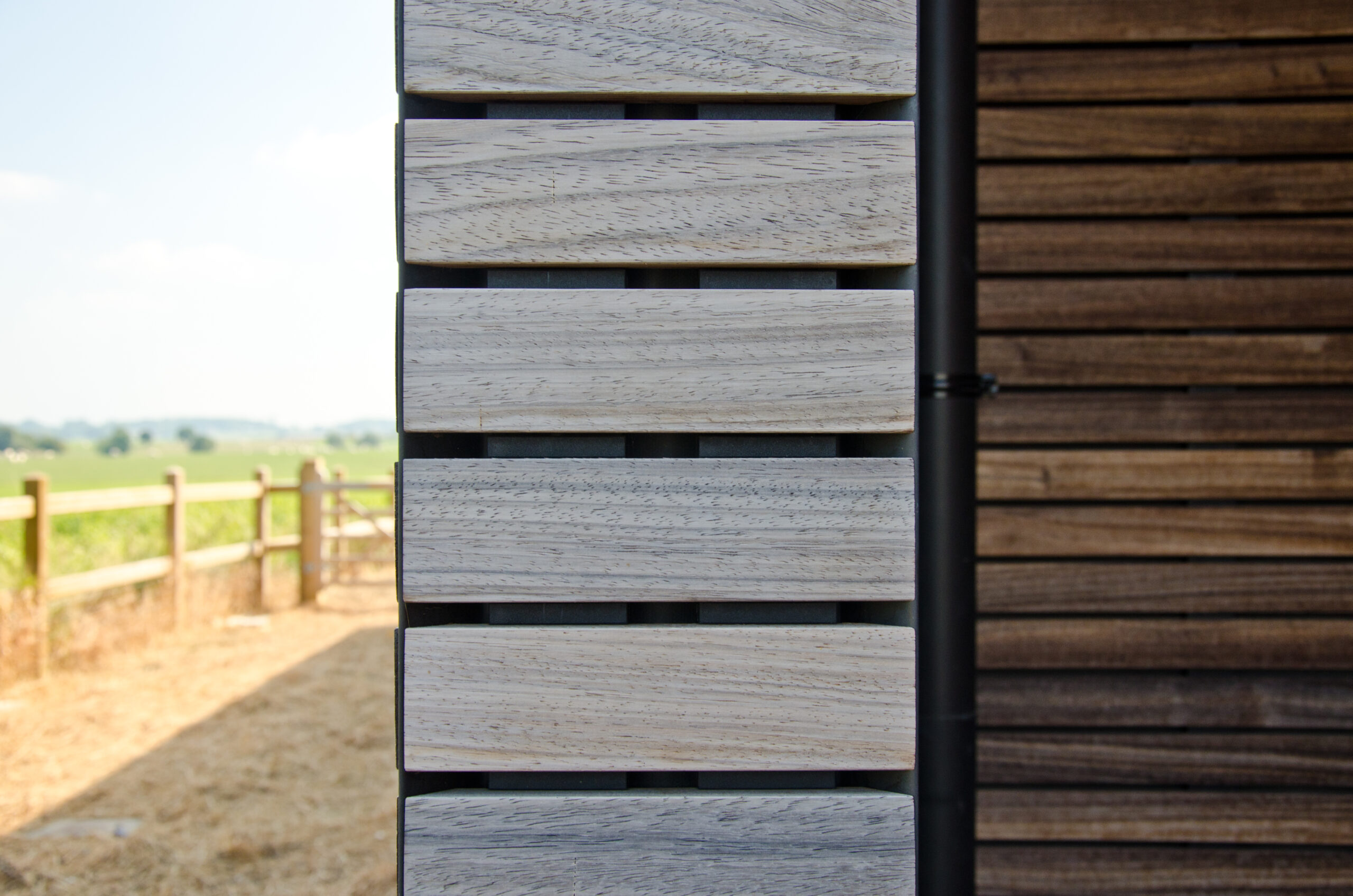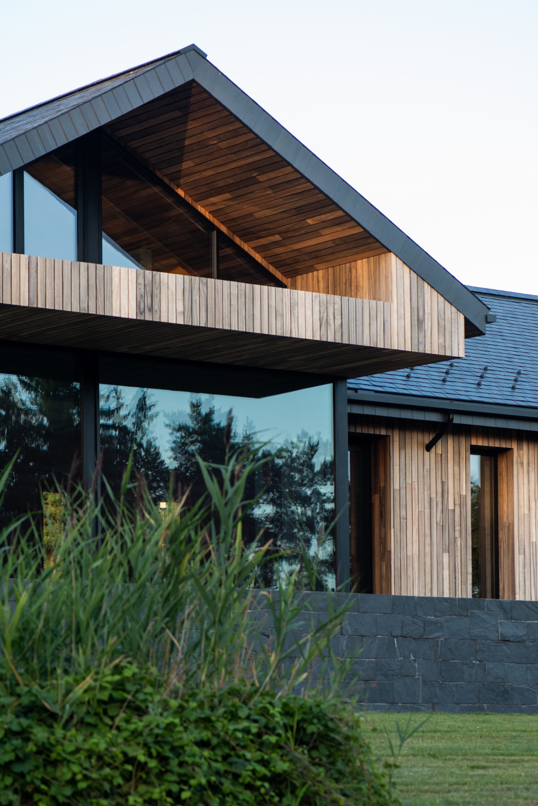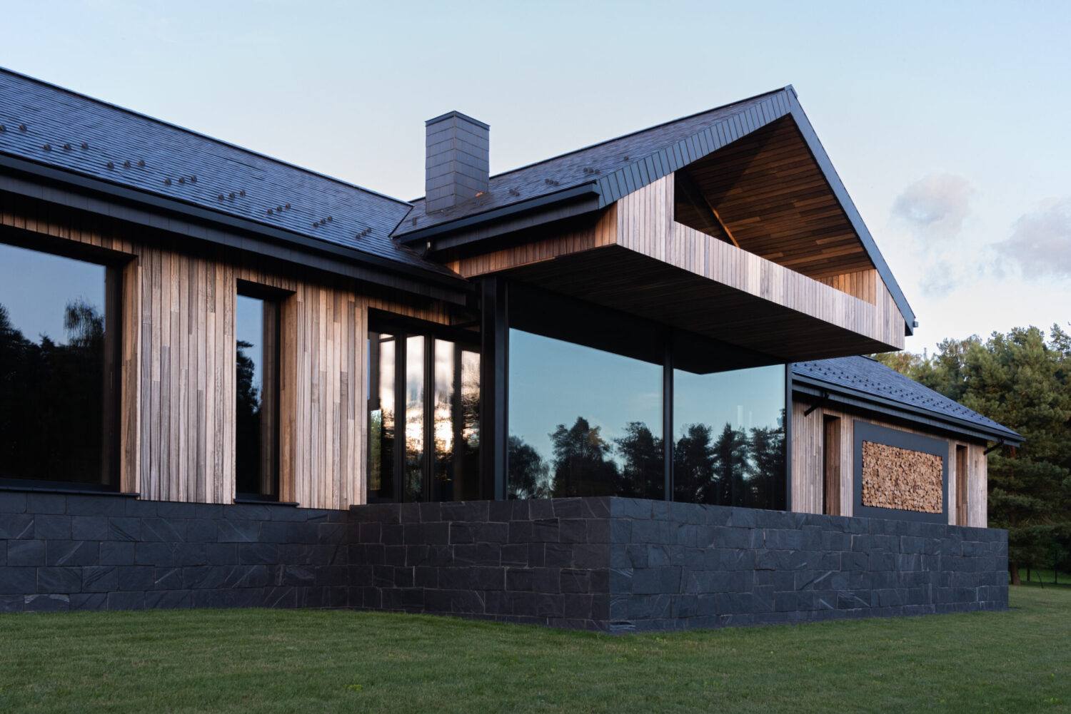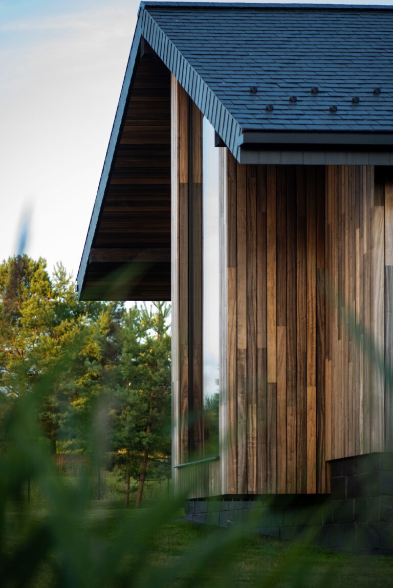 Itin vaizdingoje vietoje Kauno rajone į erdvę įlietas pastatas. Tai jungtinio šeimos projekto namas, kuris alsuoja dėmesiu kiekvienai detalei, išieškotais nestandartiniais kokybiškais ir estetiškais sprendimais, atliepančiais aplink supančią gamtą. Užsakovų atsakomybė renkantis medžiagas, kuri prasideda nuo atsakomybės prieš save, įrengimo kodeksas paremtas darna ir pagarba, kuriant savo aplinką prieš esamą aplinką – sukūrė harmoningos auros atmosferą, kurioje atsidūrus pajauti ramybę ir besąlyginį jaukumą. Tokių užsakovų pasitikėjimas mūsų atstovaujamiems produktams, šiuo atveju TECHNICLIC medinei fasado sistemai su PADAUK medienos lentomis, pasirenkant ir įliejant juos į savo projektą, suteikia mūsų darbui prasmę ir malonumą.