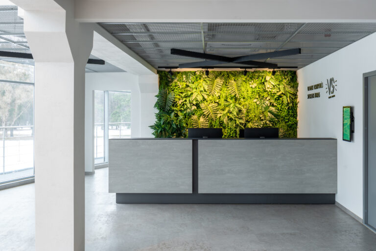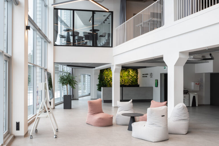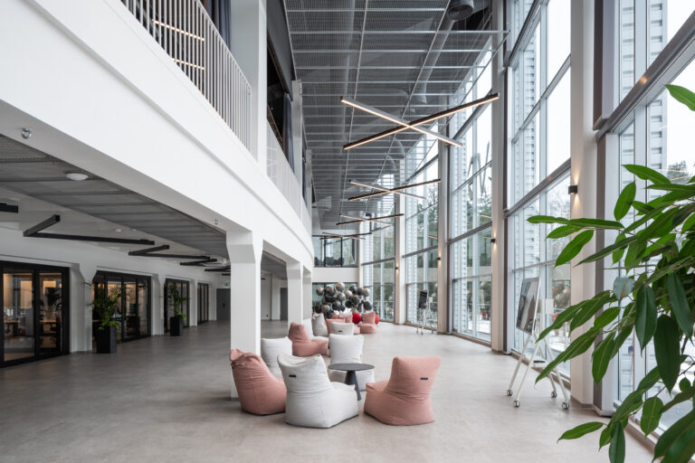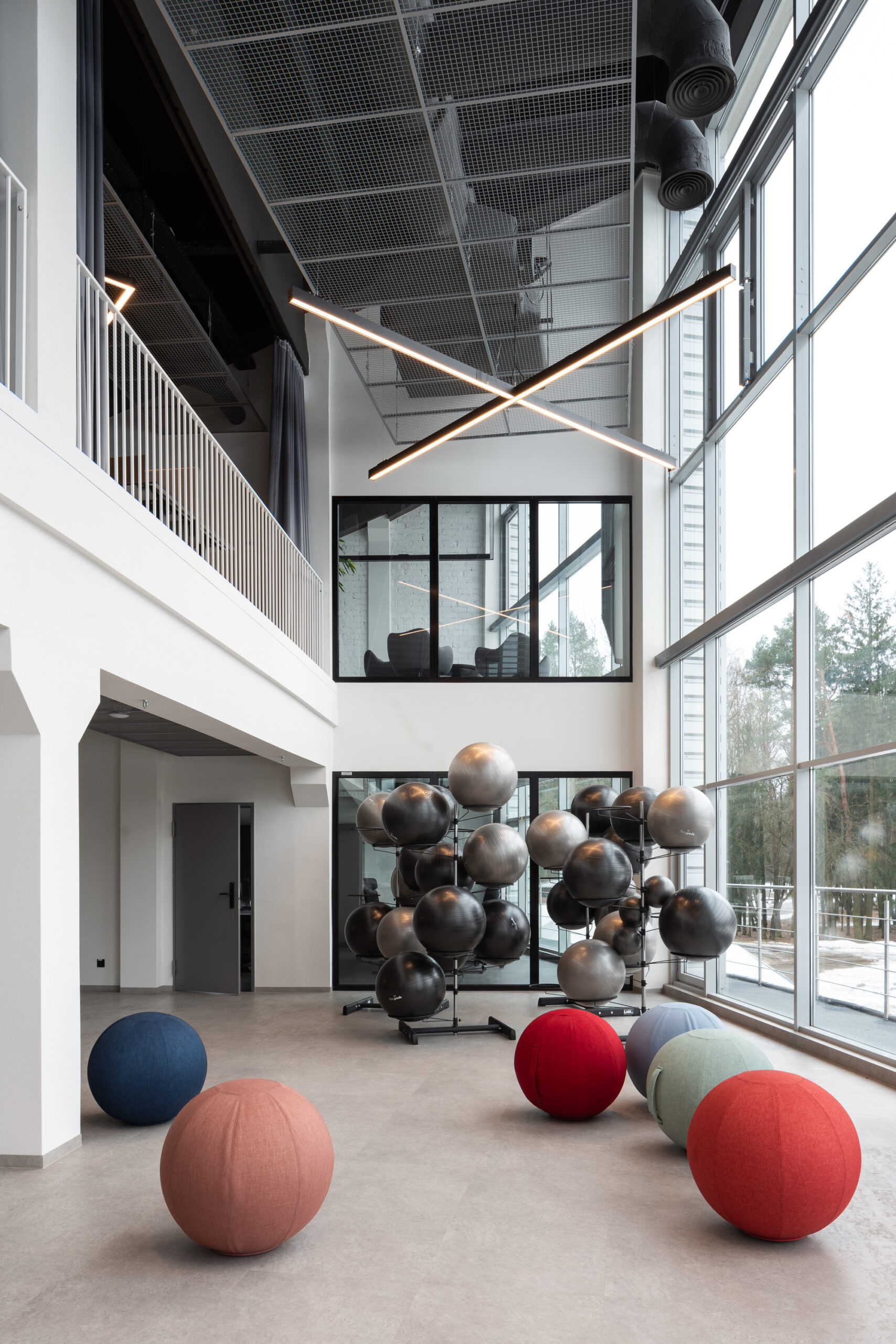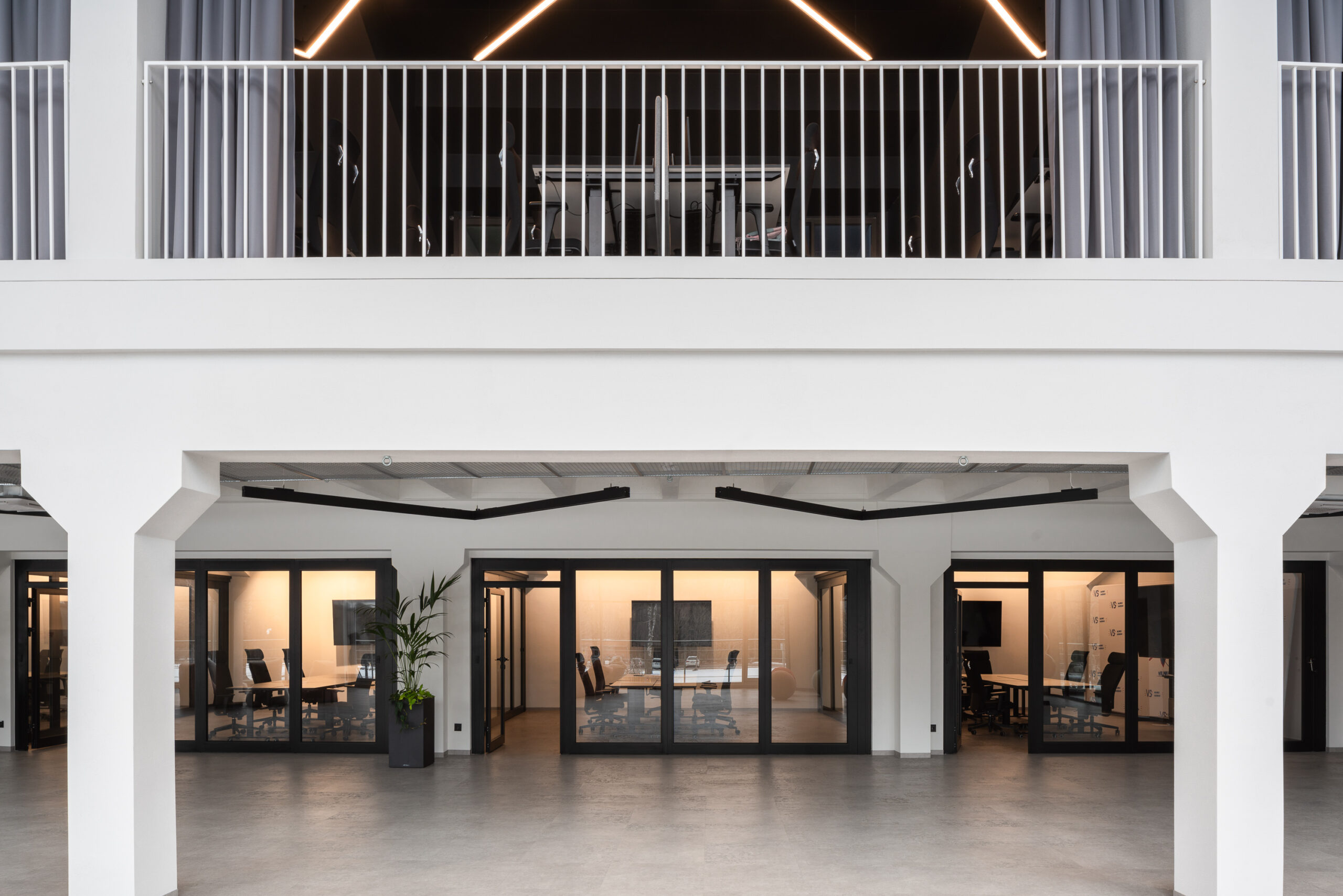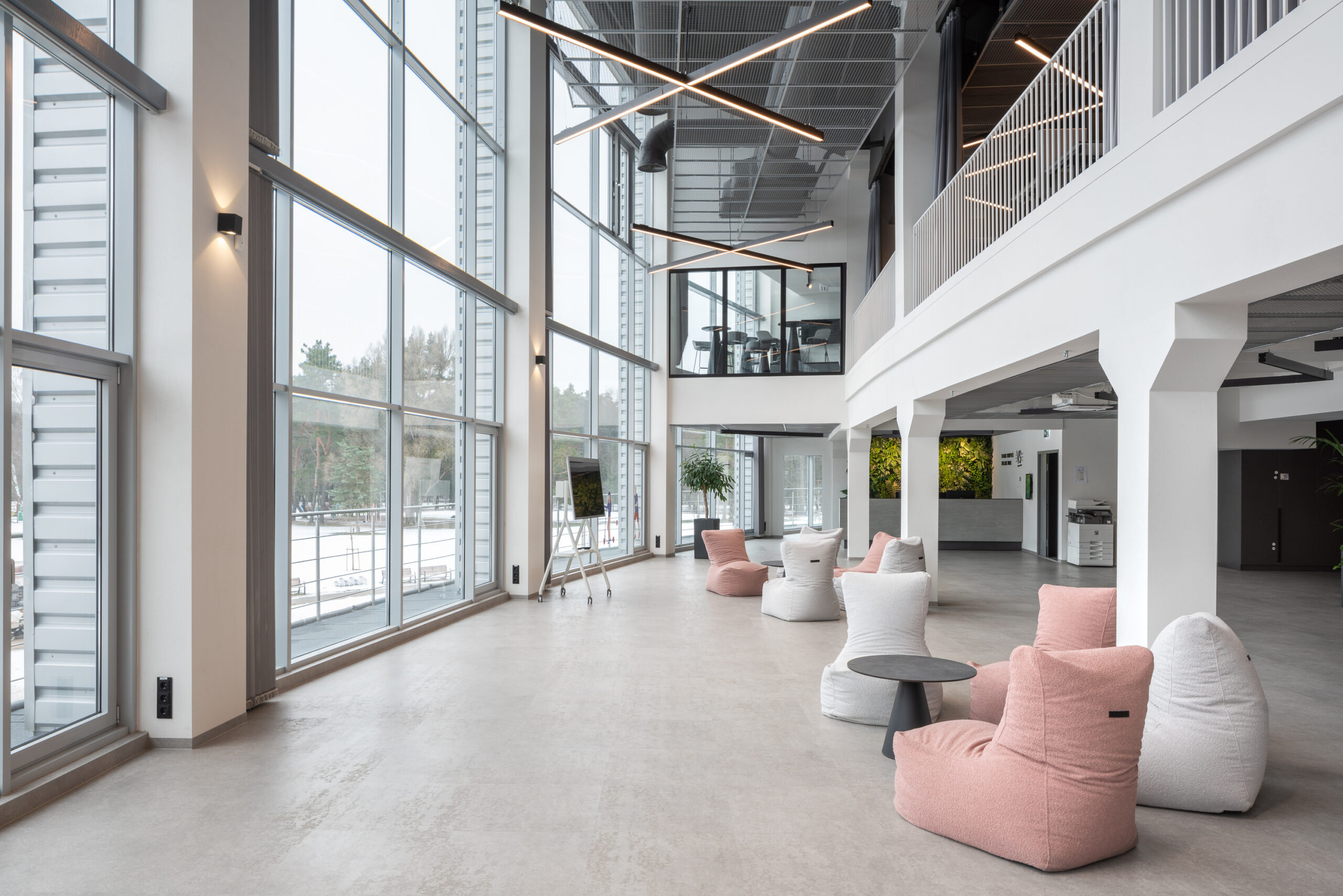 Interjero koncepcija sukurta atsižvelgiant į išskirtinę pastato struktūrą ir kontekstą. Vyrauja industrinio ir minimalistinio stiliaus estetika. Projekte panaudotas betono dizainas turi švelnius spalvinius perėjimus ir matinį struktūrinį paviršių, artimą šlifuotam betonui. Dėl savo tikroviškumo šis dizainas itin vertinamas profesionalų: interjero dizainerių bei architektų.